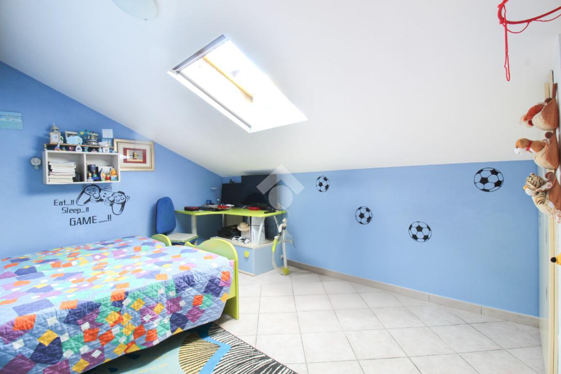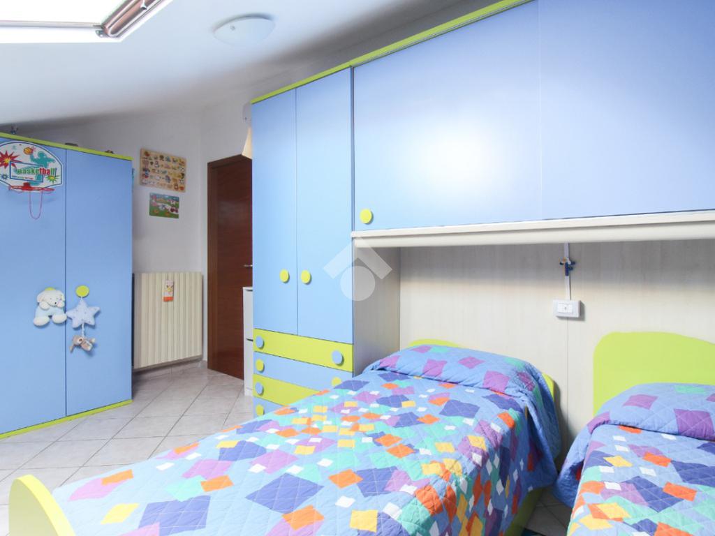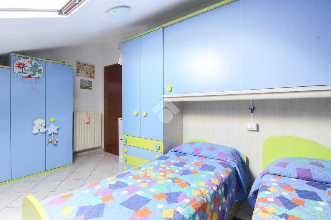 Un disimpegno conduce alla zona notte, composta da camera matrimoniale, cameretta e bagno finestrato con box doccia e accesso al balcone.