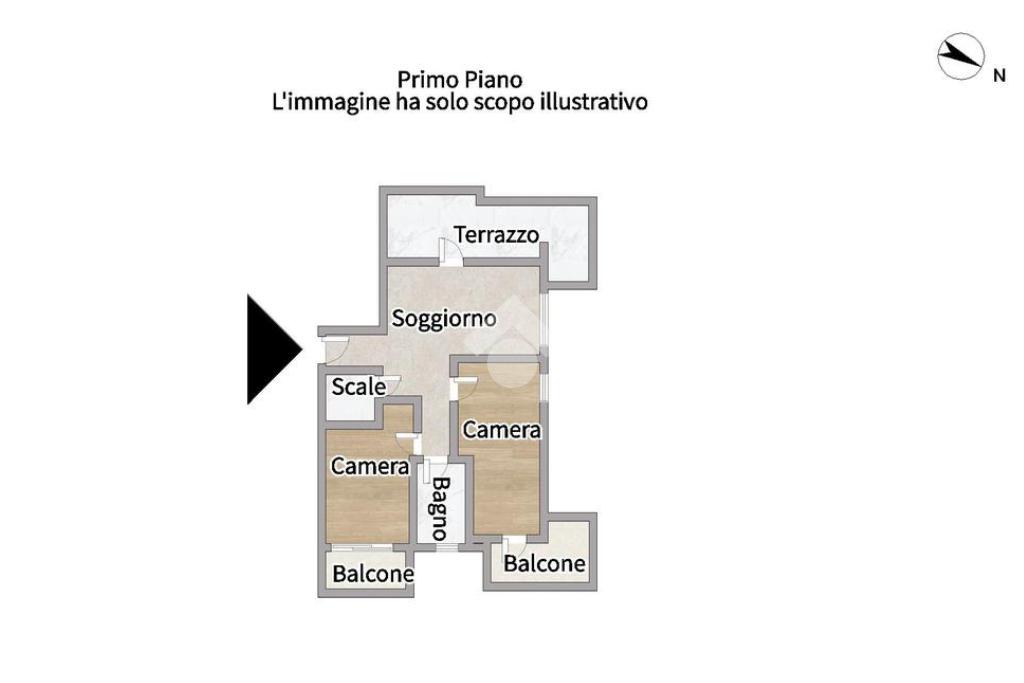 Tramite scale interne o da ingresso indipendente si accede al primo livello composto da soggiorno con affaccio sul terrazzo abitabile.