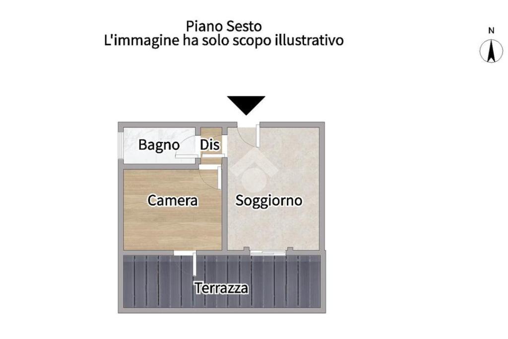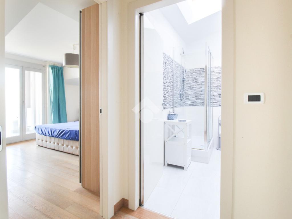 Un disimpegno conduce alla zona notte, composta da camera matrimoniale con affaccio sul terrazzo e bagno finestrato con box doccia.