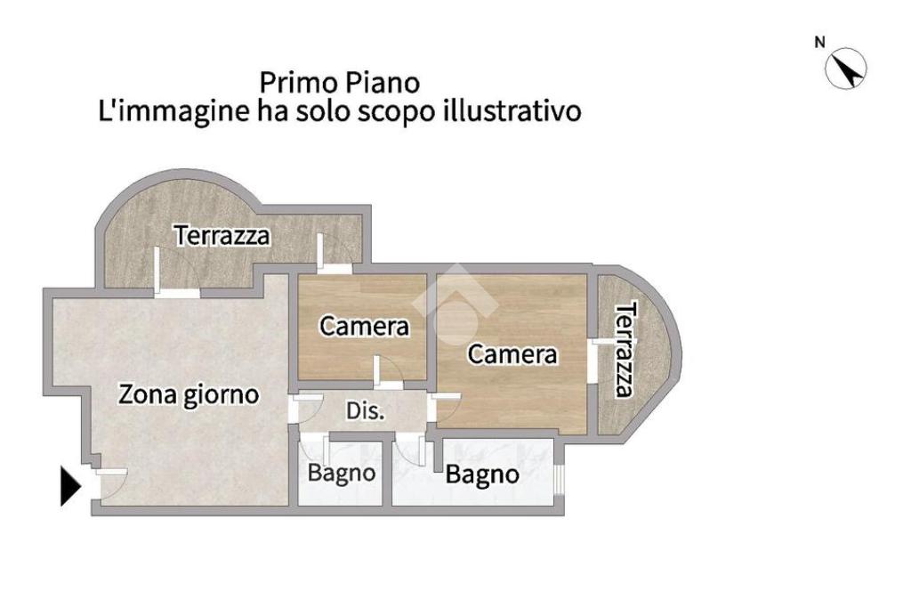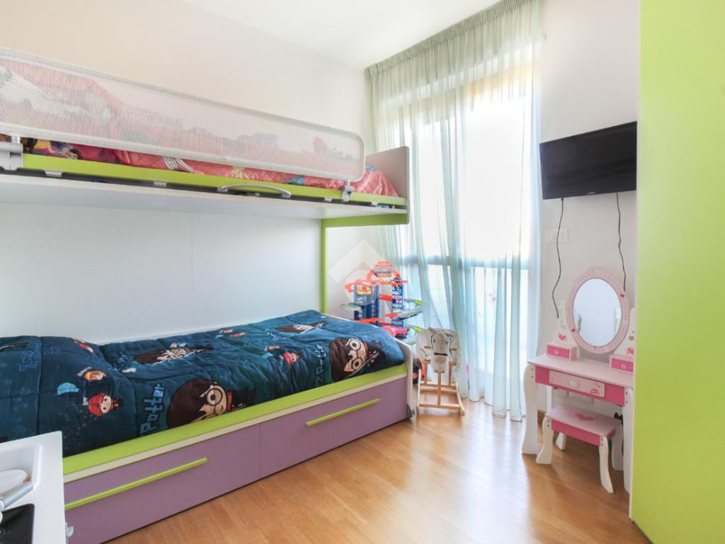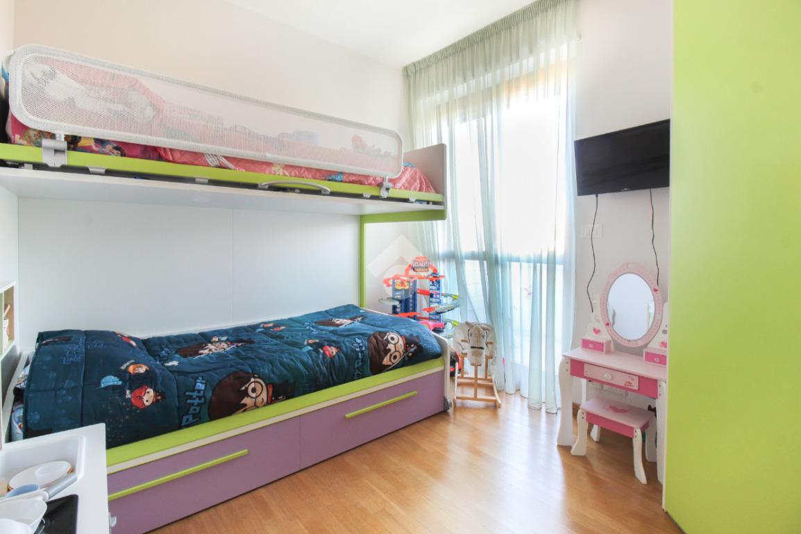 Un disimpegno conduce alla zona notte, composta da camera matrimoniale e cameretta, entrambe con affaccio su balcone e due bagni di cui uno finestrato con box doccia.