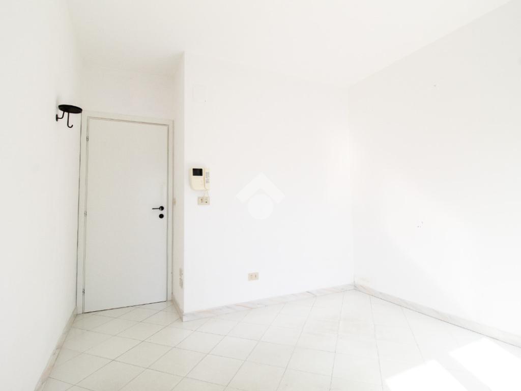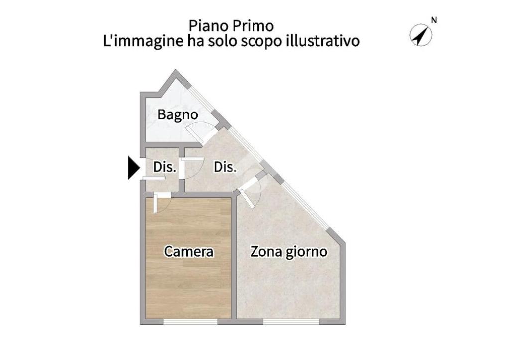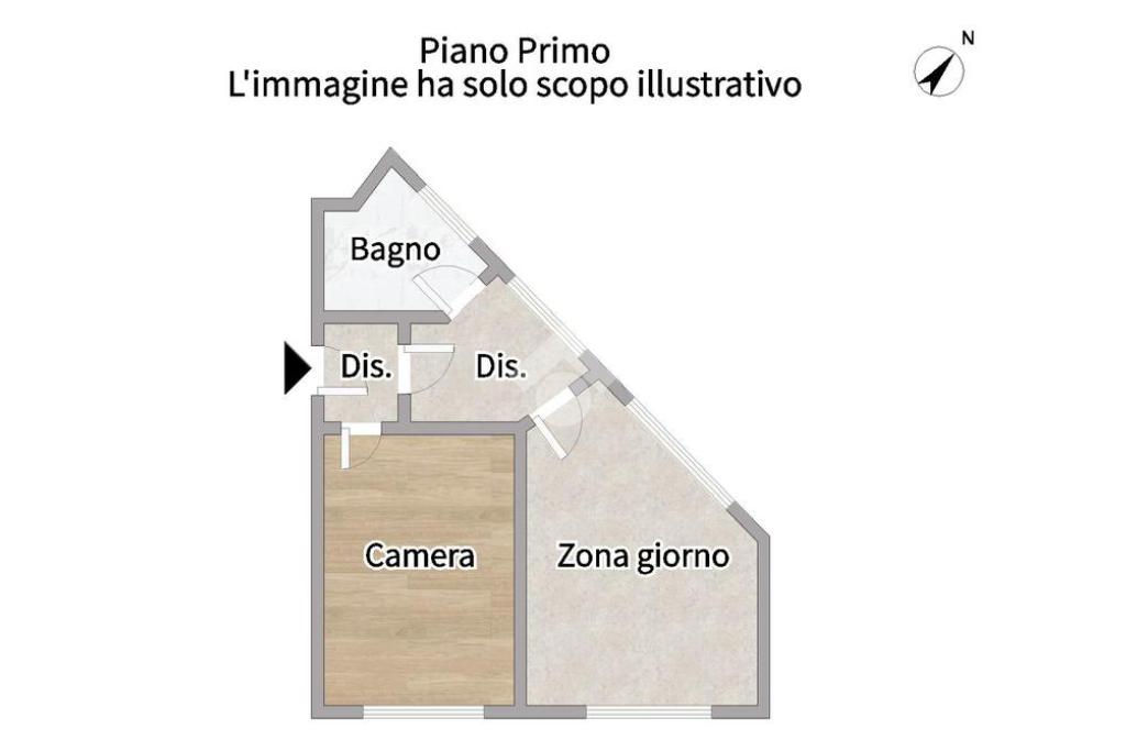 L’ingresso si apre su un disimpegno che conduce alla prima stanza, ideale come camera matrimoniale. Un secondo disimpegno accompagna al bagno finestrato e alla seconda stanza, già dotata di impianto per la cucina, perfetta per essere adibita a zona giorno con cucina open space.