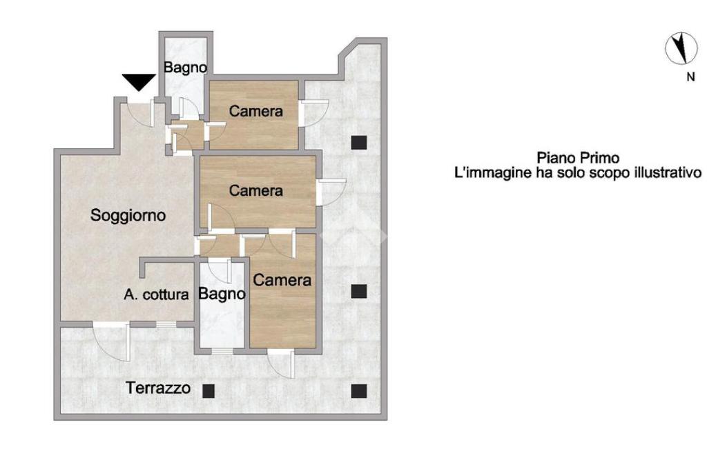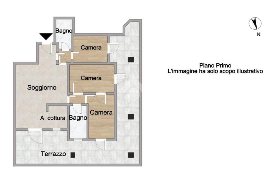 Tutte le camere dell’abitazione hanno accesso diretto al terrazzo, elemento che valorizza ulteriormente la luminosità degli ambienti e permette di vivere pienamente gli spazi esterni.