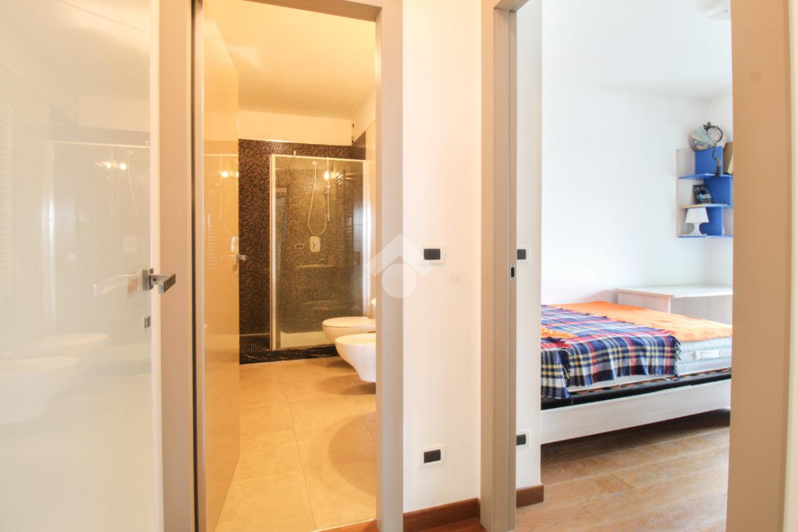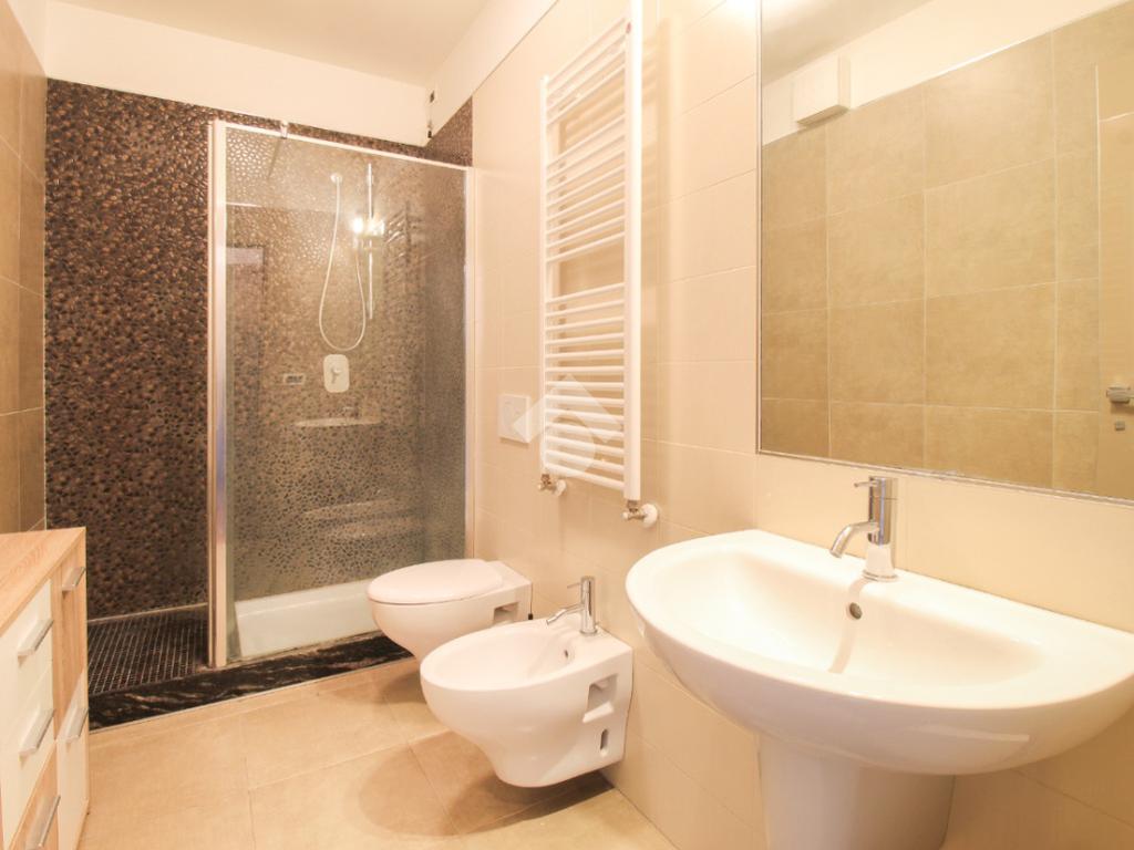 La seconda zona notte è composta da una terza camera con bagno dotato di box doccia, soluzione perfetta anche per ospiti o per chi desidera maggiore indipendenza degli spazi.