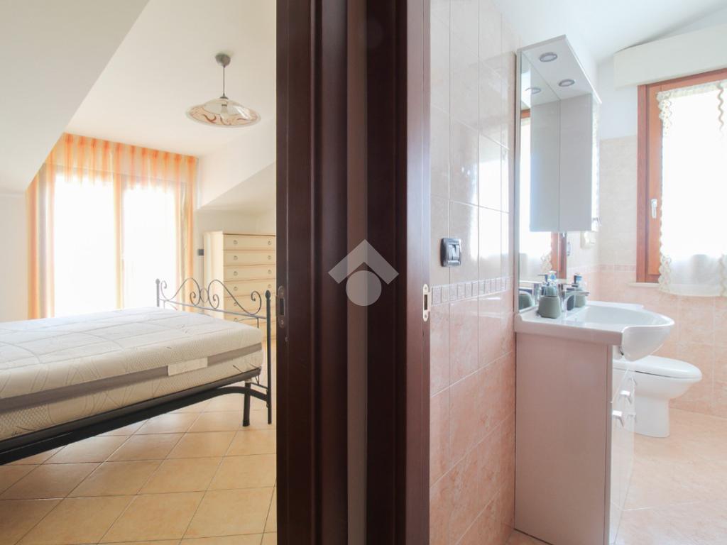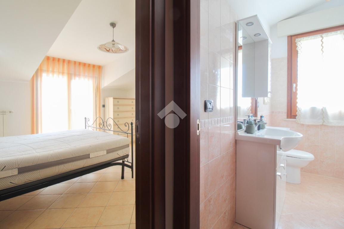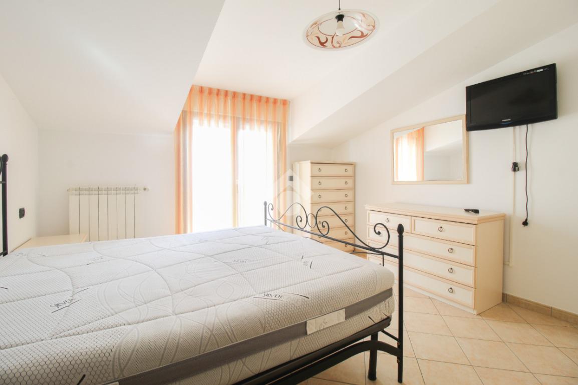 La zona notte è composta da una spaziosa camera matrimoniale, anch’essa con affaccio diretto sul terrazzo, che garantisce ottima luminosità e continuità tra spazi interni ed esterni.