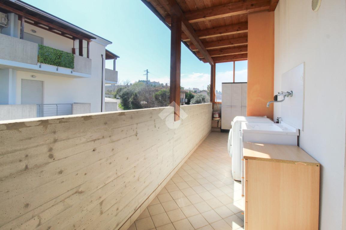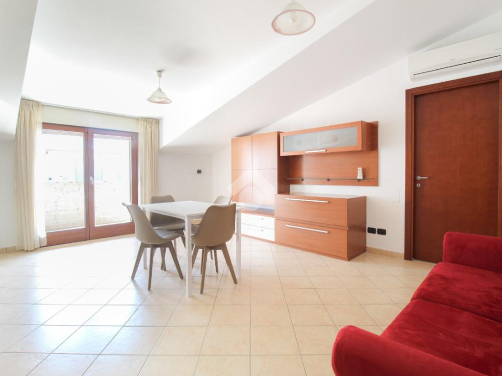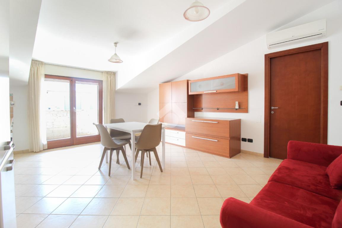L’appartamento si apre su una zona giorno open space con angolo cottura, ambiente accogliente e ben distribuito, con accesso diretto al terrazzo, perfetto per godersi momenti di relax all’aperto.