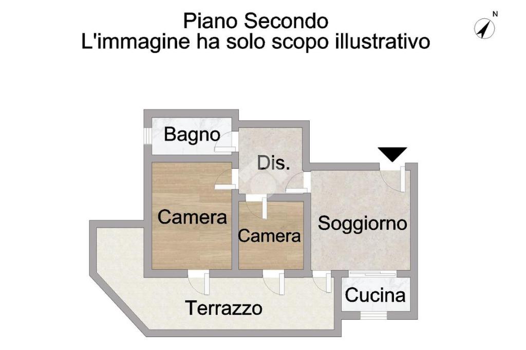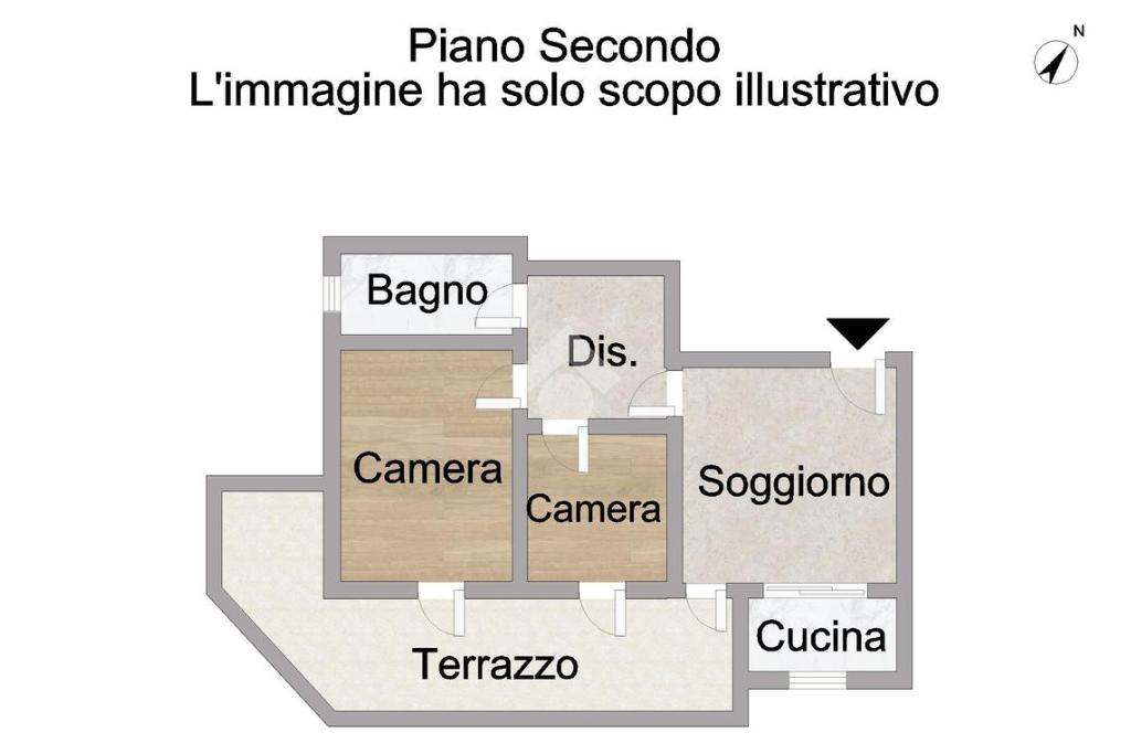 Un comodo disimpegno conduce alla zona notte, composta da una cameretta e una spaziosa camera matrimoniale, entrambe con affaccio sul terrazzo. Il bagno è finestrato ed è dotato di vasca.