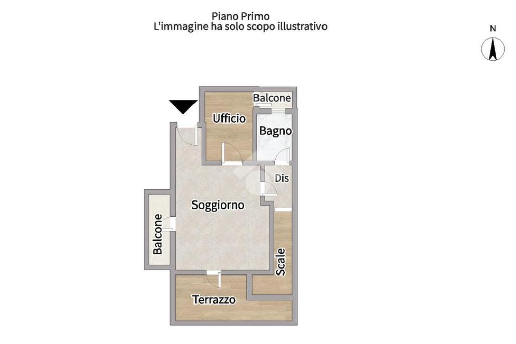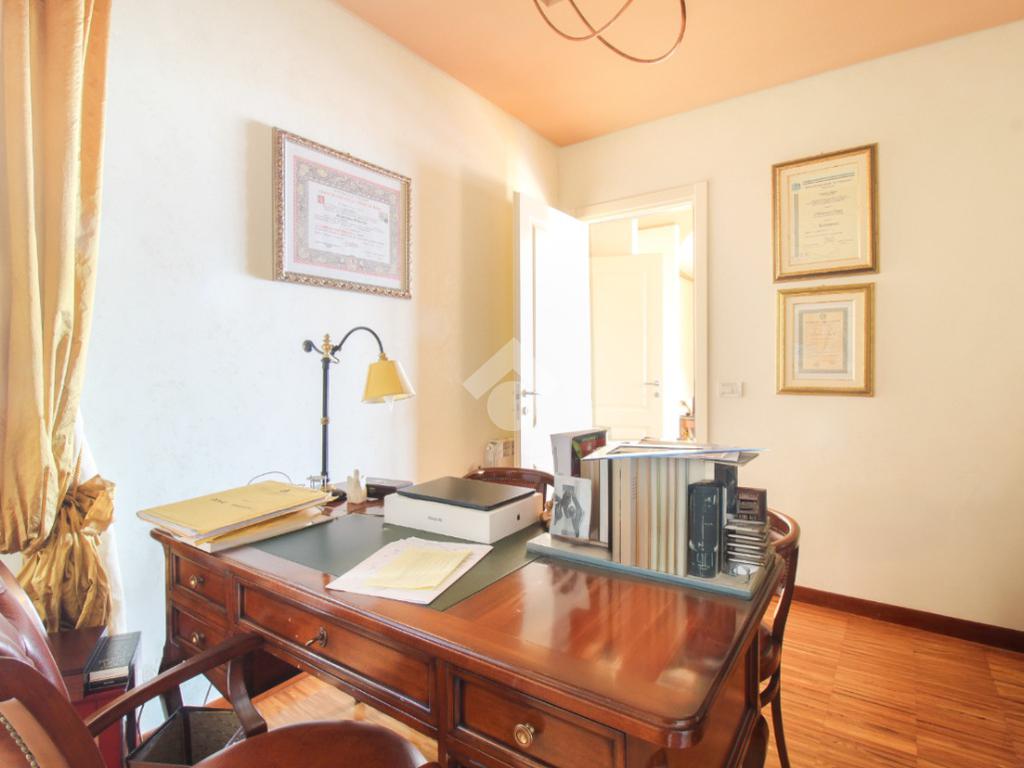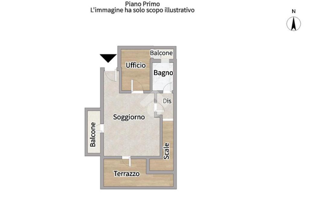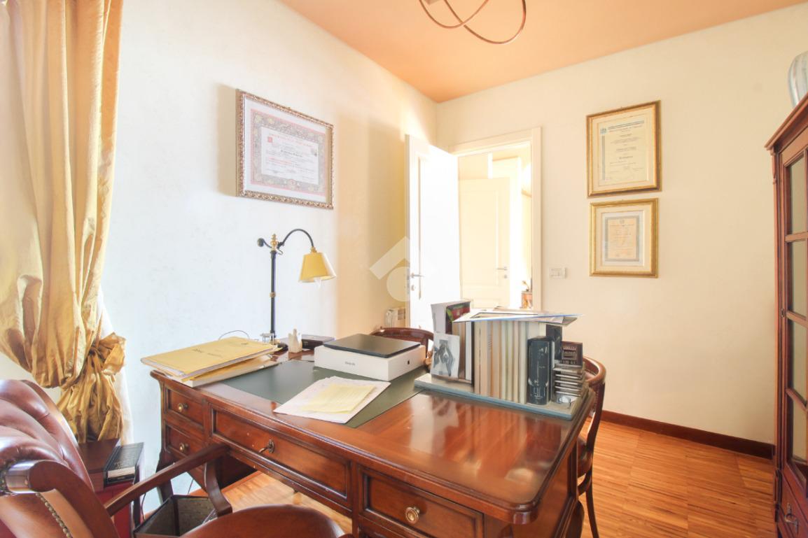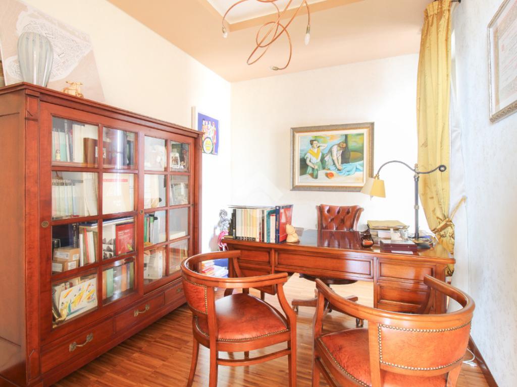 L'appartamento si compone, al primo livello, da ampio e sofisticato soggiorno con doppio affaccio su terrazzo abitabile vista mare, ufficio con balcone privato e bagno finestrato con box doccia.