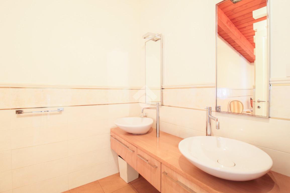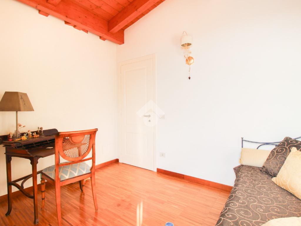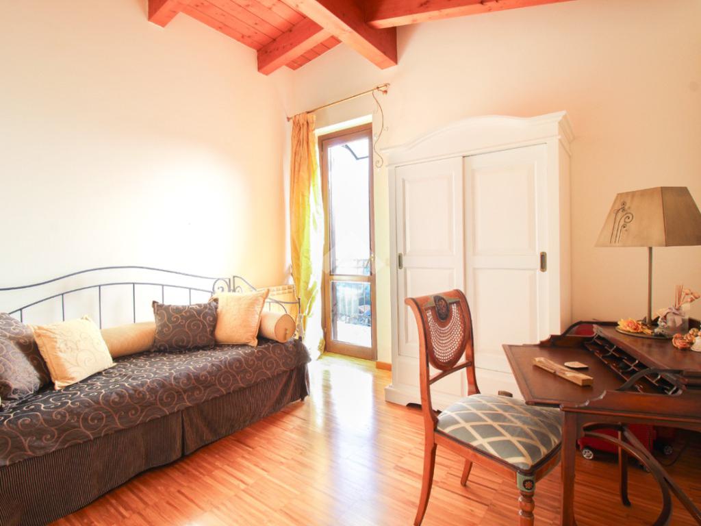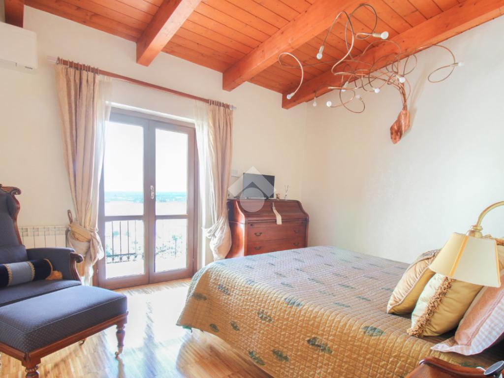 La zona notte, al secondo livello, presenta una camera matrimoniale con affaccio sul balcone con vista panoramica, seconda camera matrimoniale con soffittto in travi in legno a vista, cameretta con balcone privato e bagno finestrato con vasca idromassaggio.