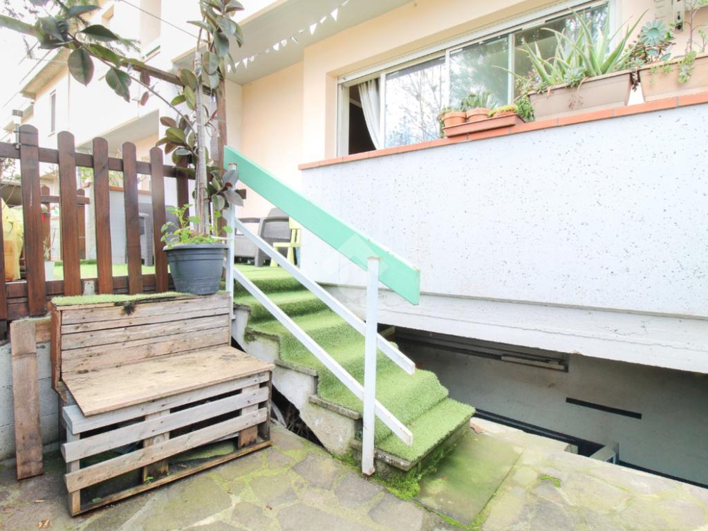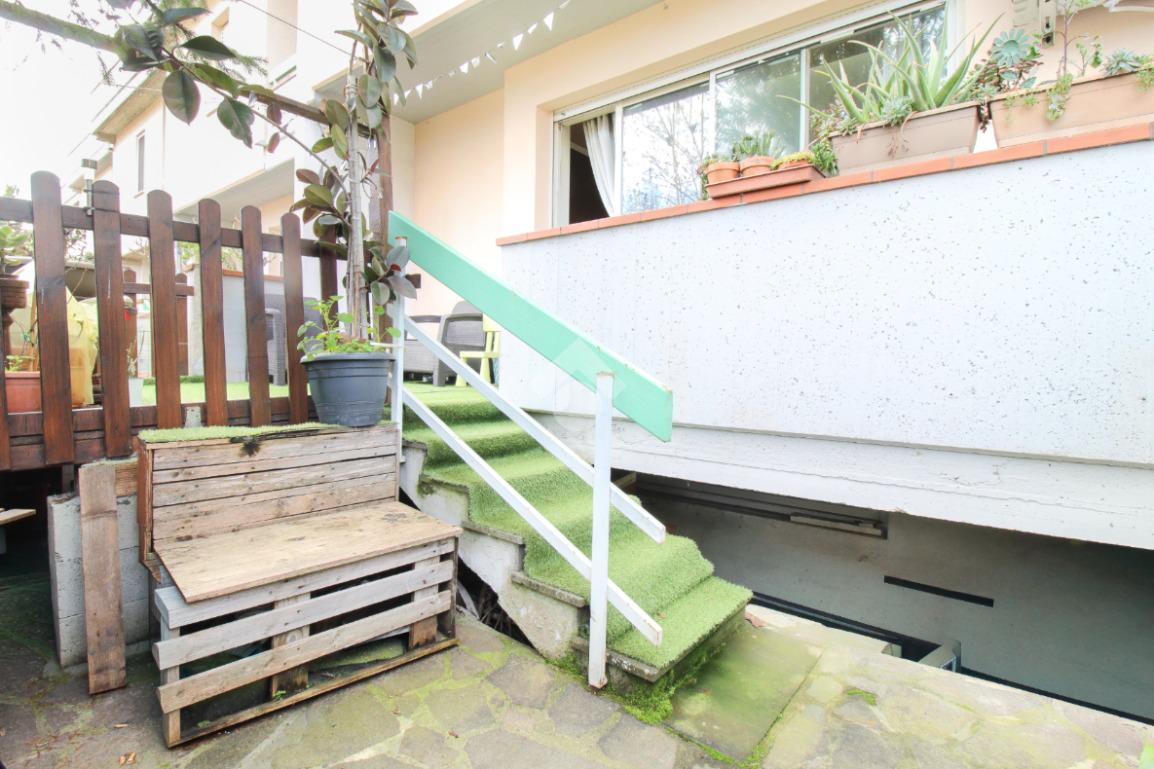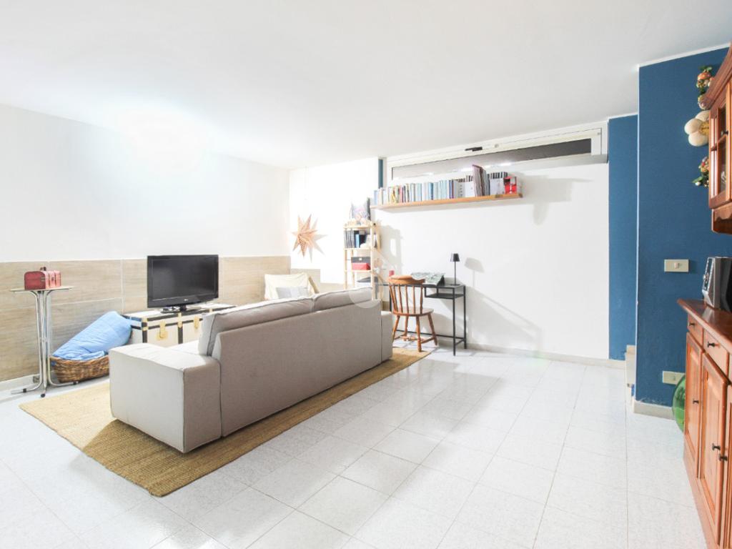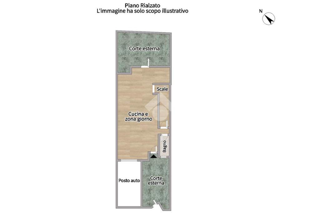 Al piano rialzato, l'immobile si apre su una luminosa zona giorno con cucina open space e affaccio diretto su corte privata. Completa il livello un bagno finestrato con box doccia.
