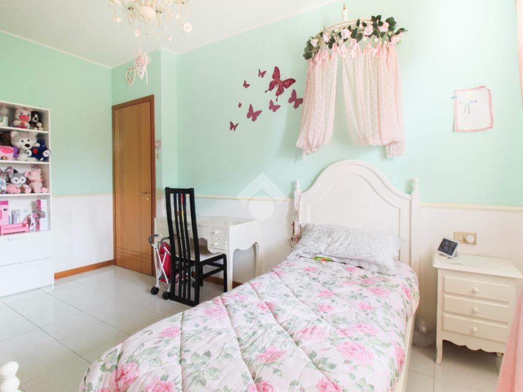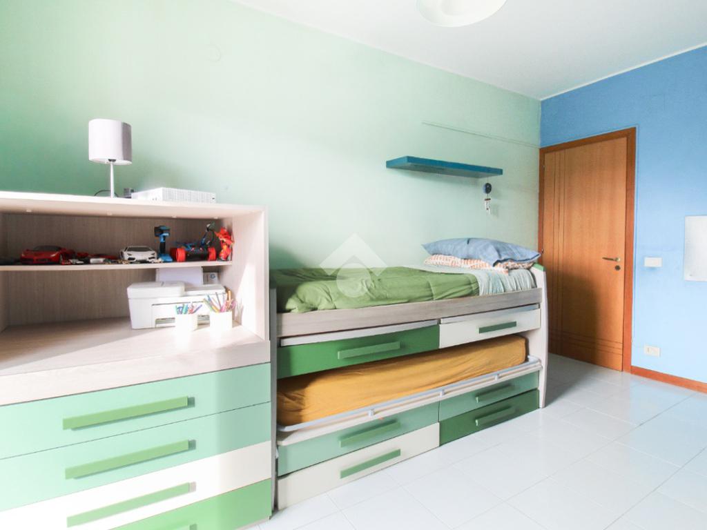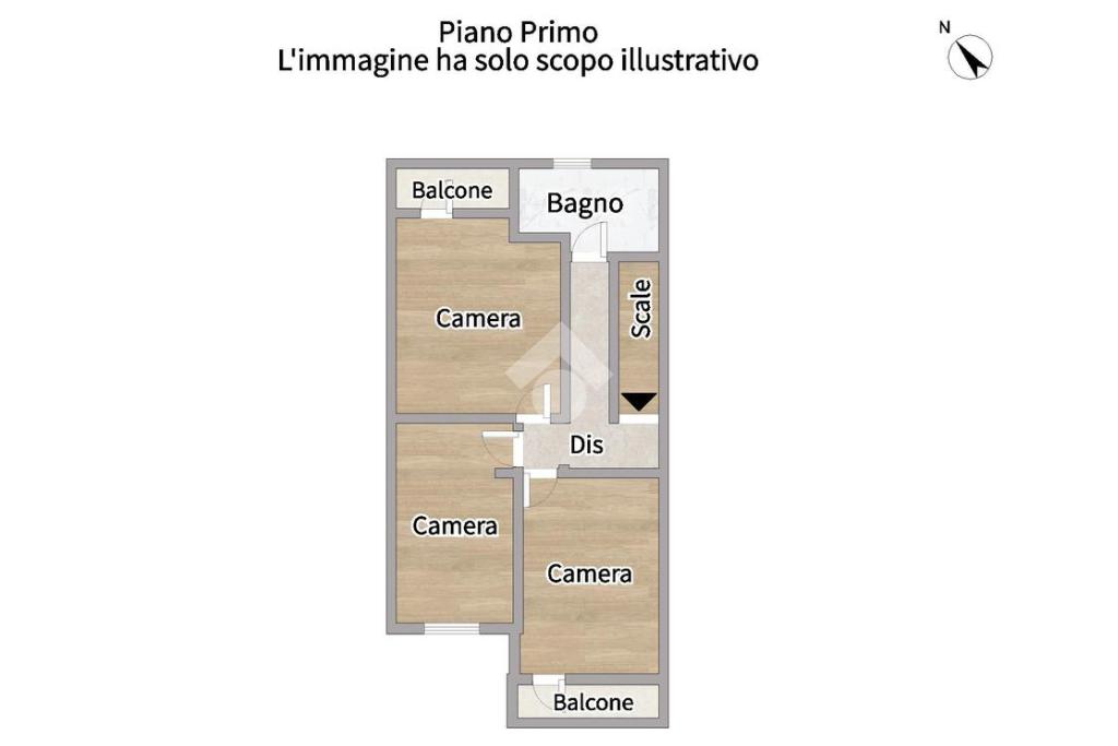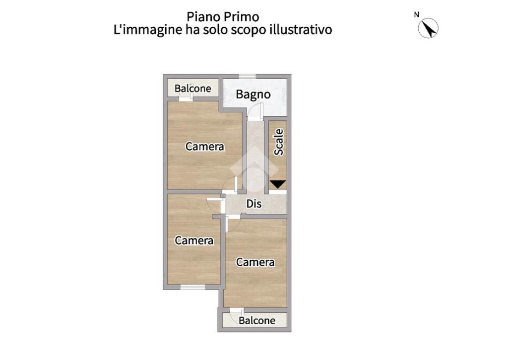 Al primo piano troviamo la zona notte, composta da camera matrimoniale con balcone, due camerette (di cui una con balcone) e bagno finestrato con box doccia.