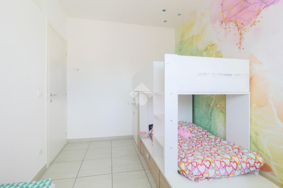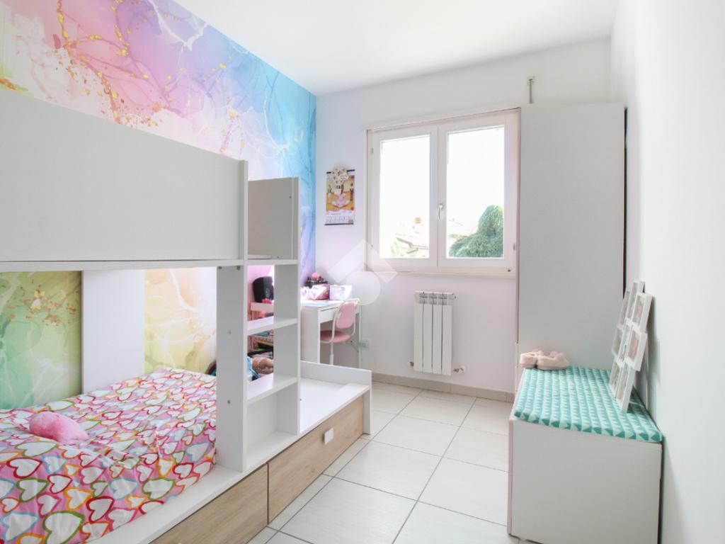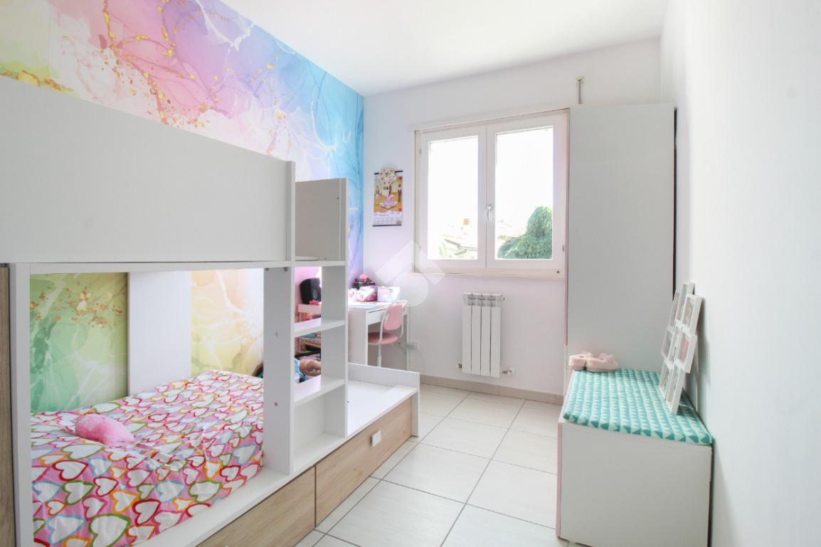 Un disimpegno conduce alla zona notte, composta da camera matrimoniale con balcone privato, cameretta e due bagni, uno finestrato con con vasca, l'altro con box doccia e lavanderia.