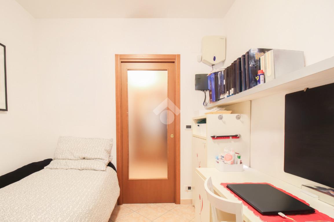 Un disimpegno conduce alla zona notte, composta da camera matrimoniale con balcone privato, cameretta e due bagni , uno finestrato con vasca , l'altro con box doccia.